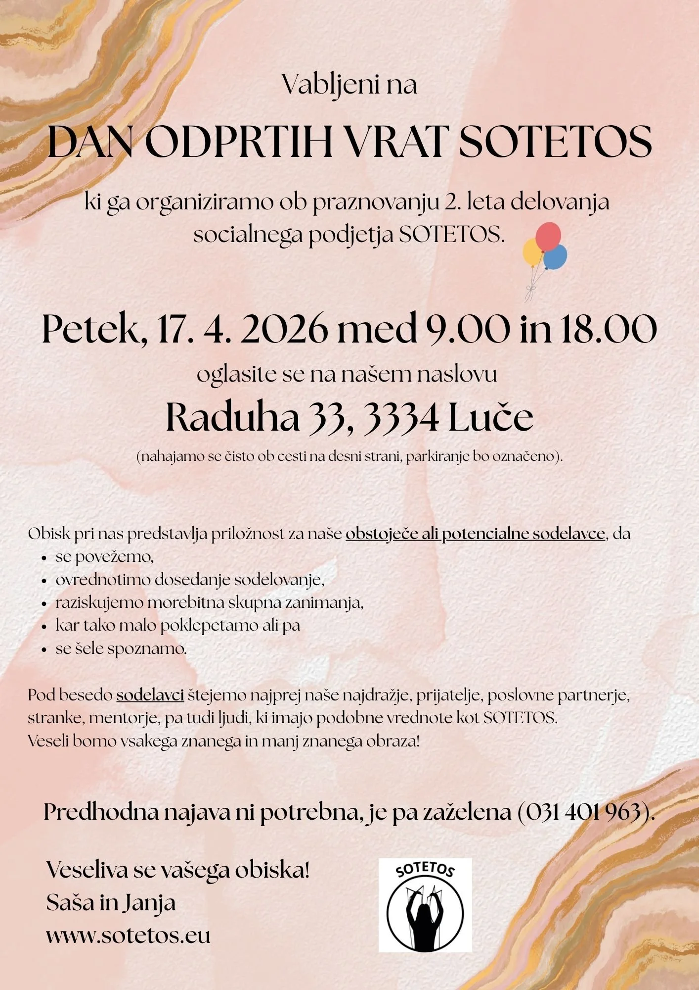 S Skozi ZABAVO O O V NARAVI Za ZDRAVJE T T E Aktualno: DAN ODPRTIH VRAT Več o SOTETOS POSAMEZNIKIPsihološko svetovanjeProgram udejanjanja potencialov PARIOdmik za parePartnersko svetovanje SKUPINE Aktivnosti za delovne ekipePodpora družinam oz. mrežam v stiski